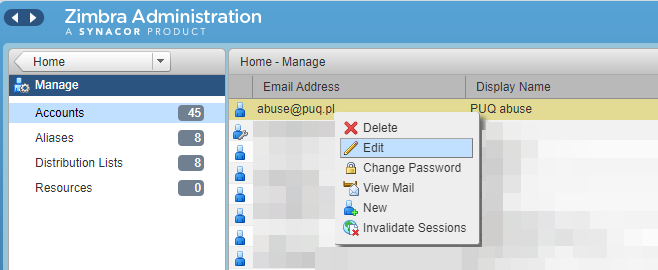 - Go to "Manage" > "Accounts" > Select the account and click on it to open the context menu, then choose "Edit."